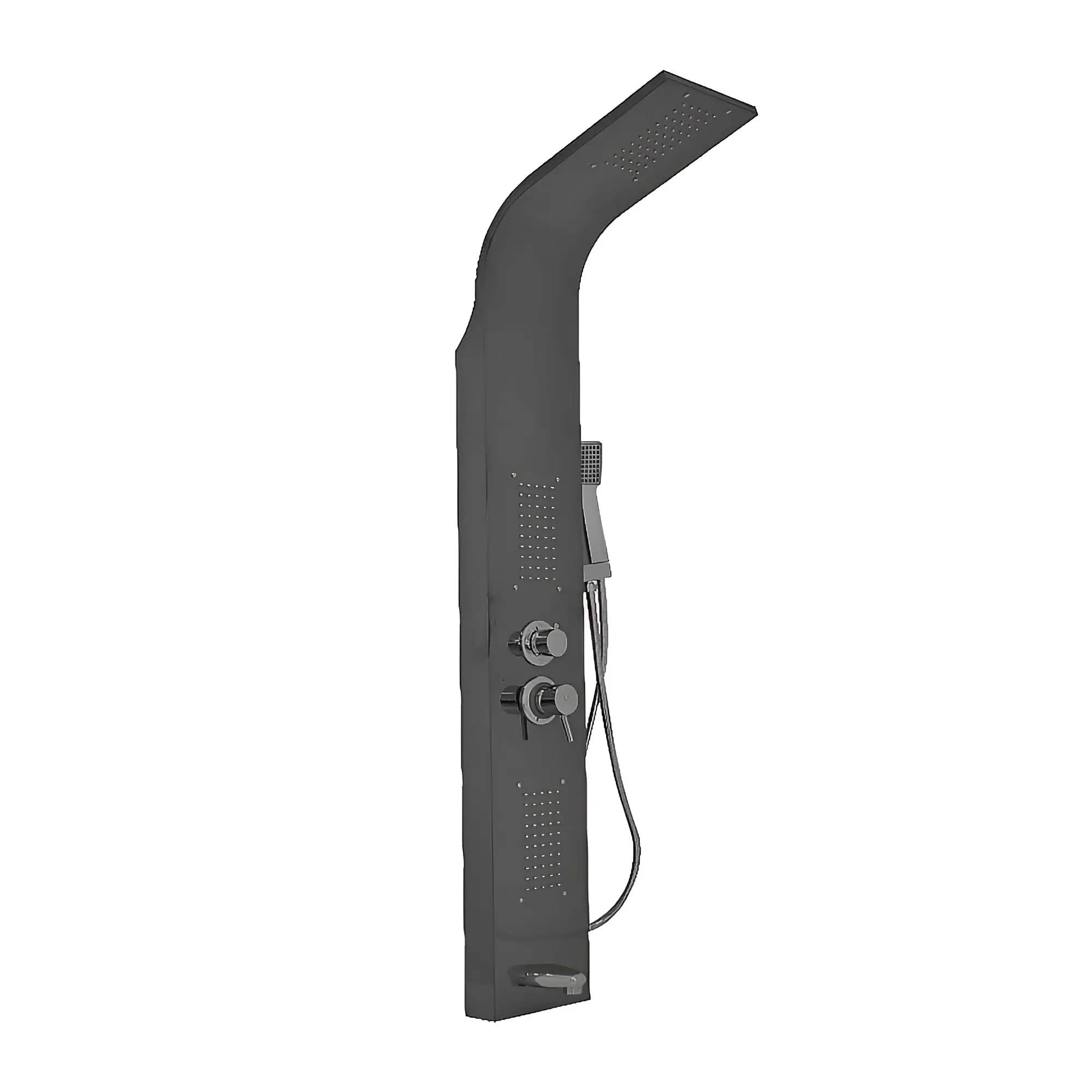 Matte grey 4 function shower panel. A neutral, stylish choice for contemporary bathrooms. Spout + 2x jets + waterfall + rainfall + hand shower. 1500mm in height and 220mm in width. (1 Year Warranty)