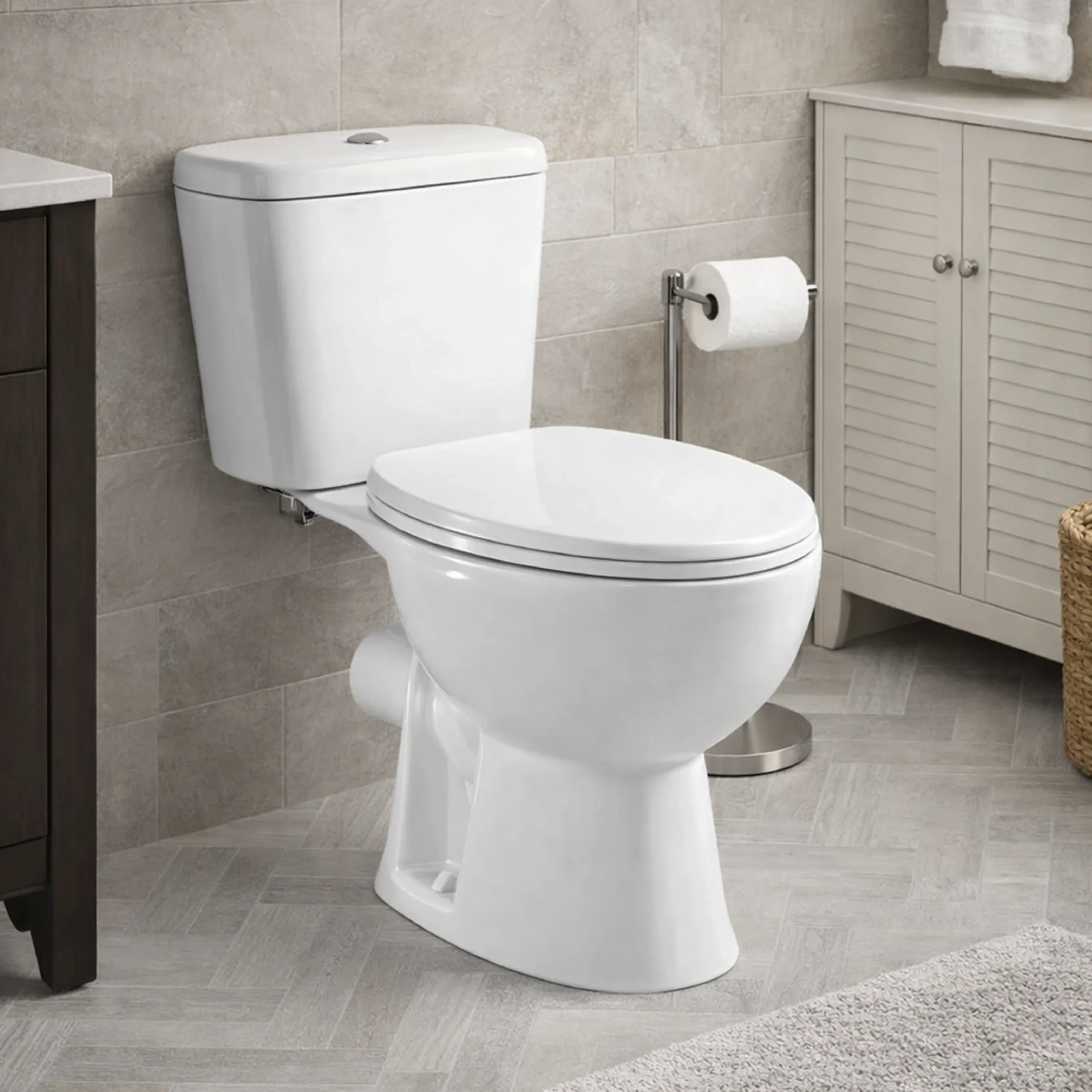 A stylish close couple toilet set featuring a white top flush design for easy everyday use.