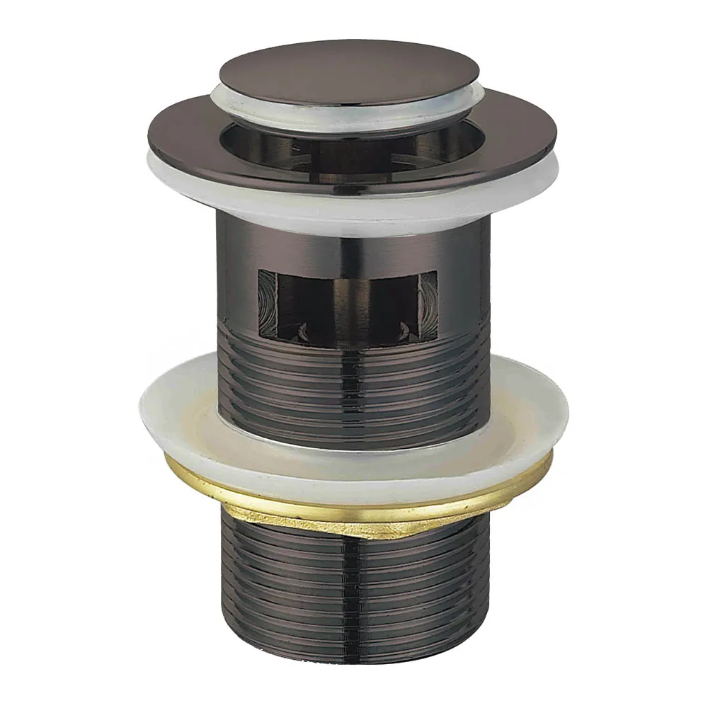 Gun grey finish brass pop-up waste, slotted for overflow basins. 32mm size. Backed by a 2-year warranty.