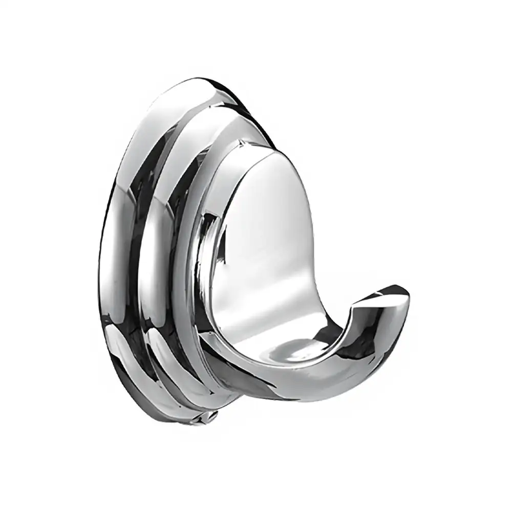 A compact chrome robe hook with a classic design, perfect for hanging towels, robes, or bathroom accessories with ease.