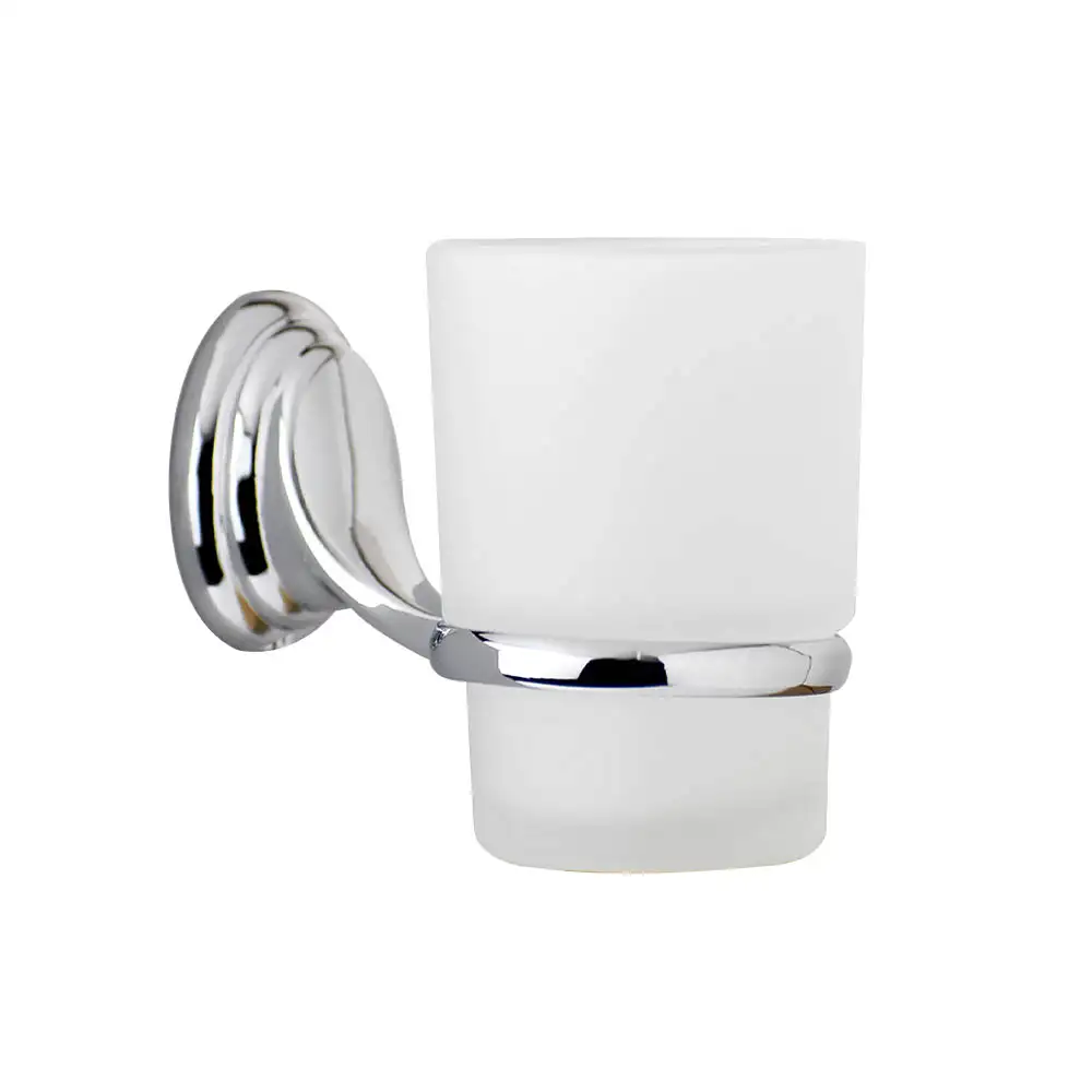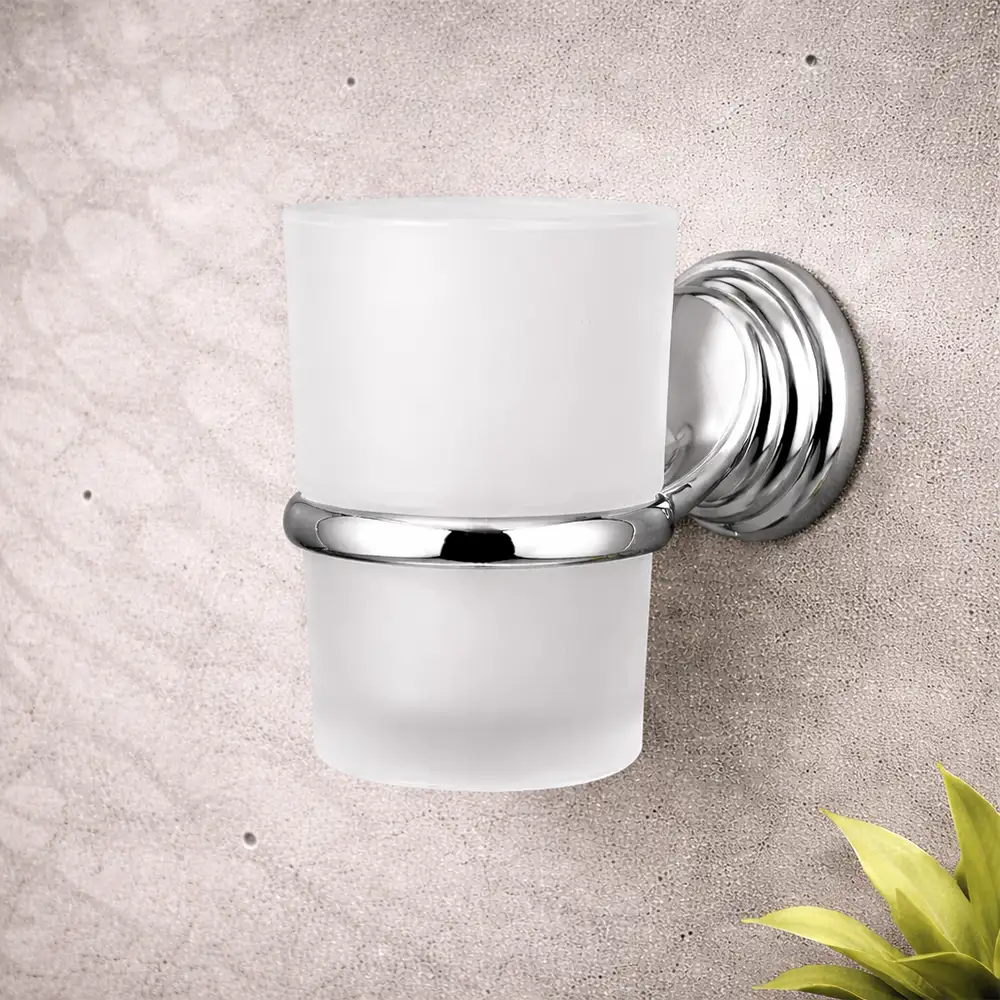 A chrome wall-mounted tumbler holder featuring a sturdy, timeless design, ideal for keeping toothbrushes and bathroom essentials neatly organised.