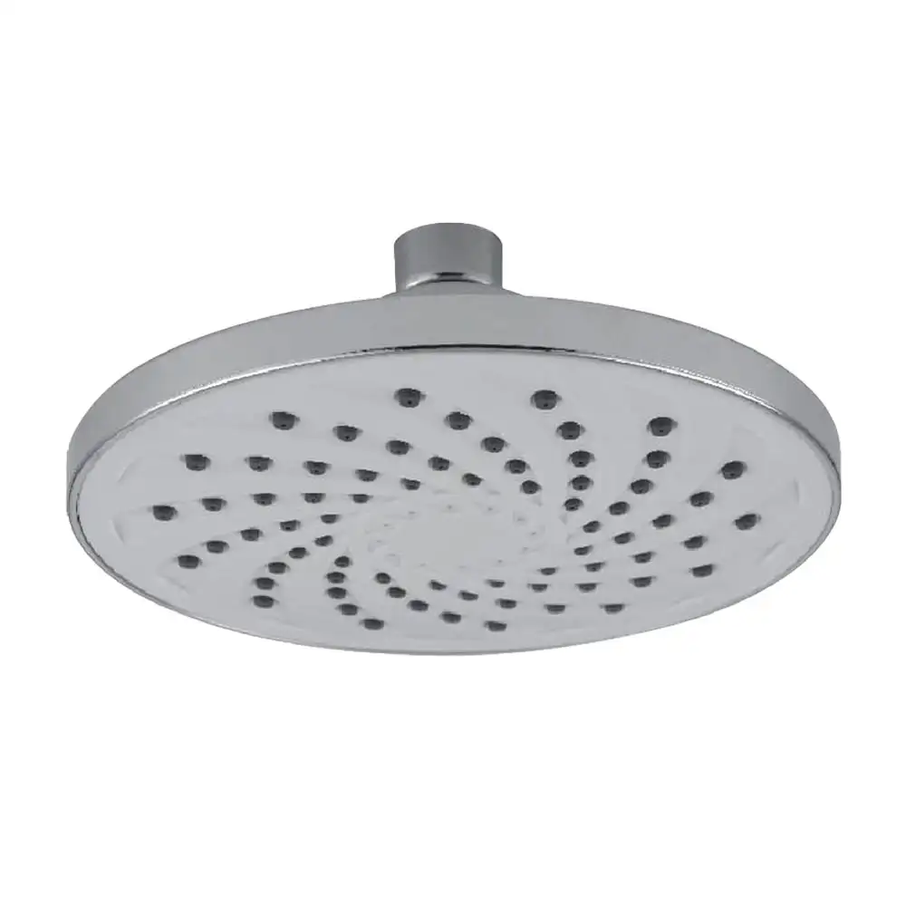 Compact 6-inch shower head by Alco, complete with arm and stainless steel flange.