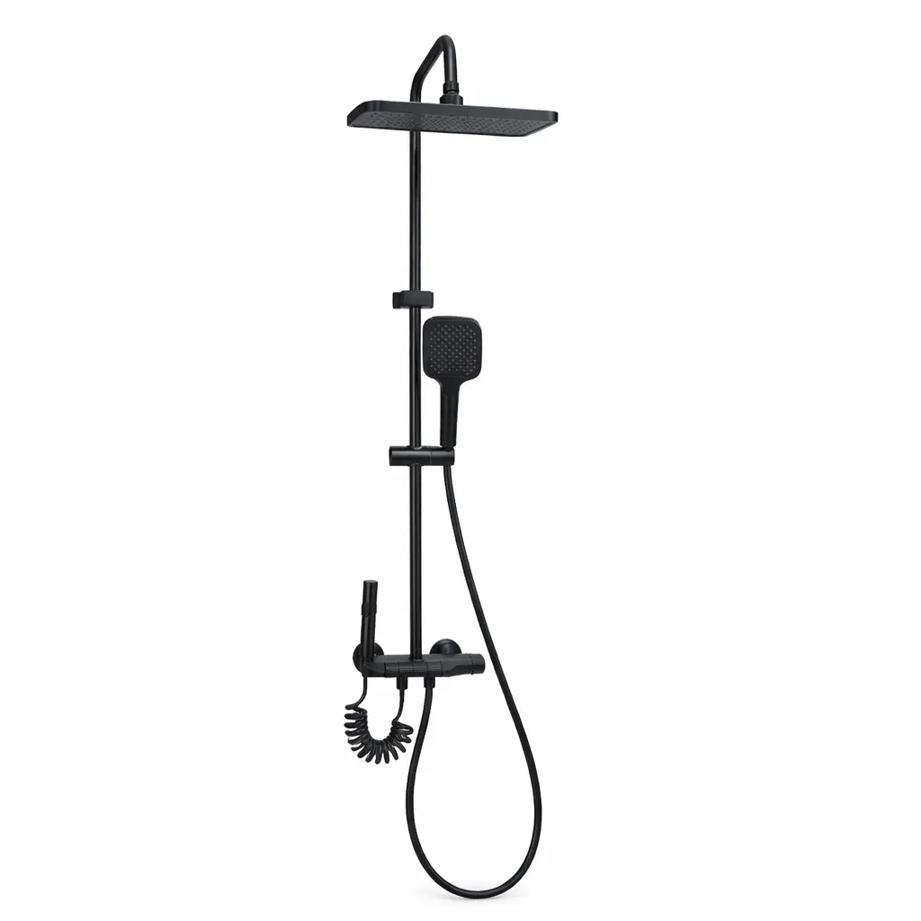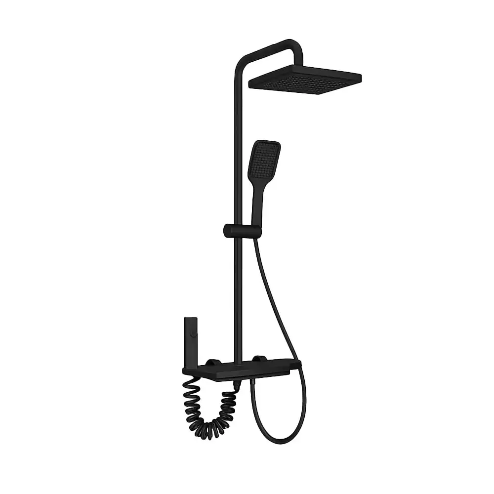 Components: Overhead rain shower, hand shower, adjustable rail, mixer, and hose