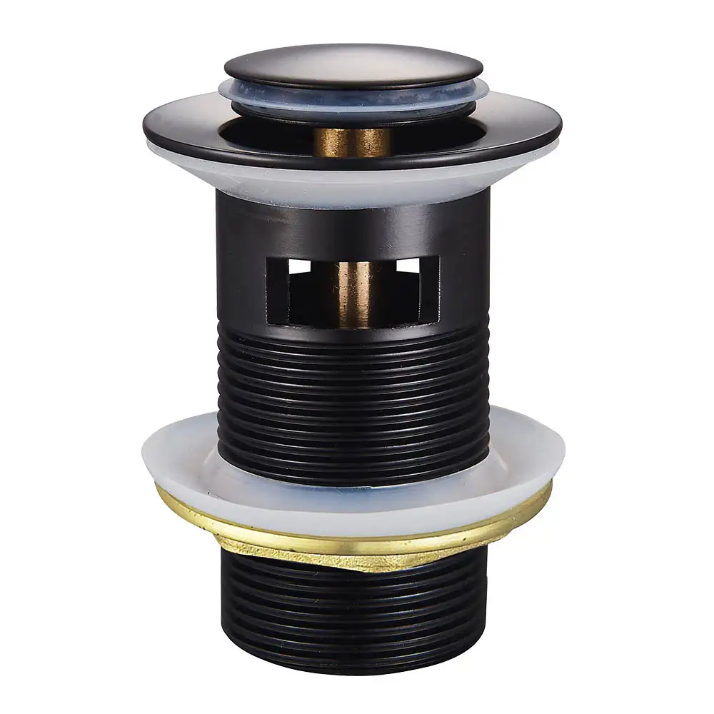 Matt black slotted pop-up waste in solid brass. Suitable for basins with overflow. 32mm size. 10-year warranty.