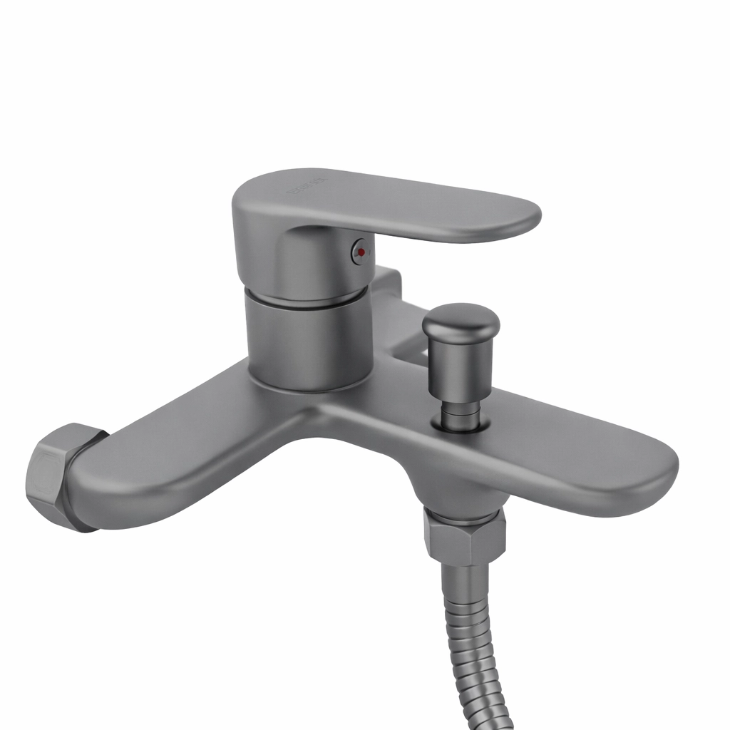 Stylish gun grey bath mixer with durable construction. 10 year warranty included.