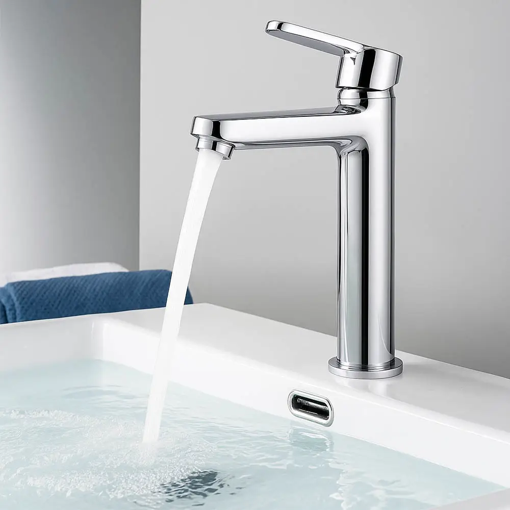 Elegant chrome long-body basin mixer crafted from solid brass with a smooth ceramic cartridge for effortless control. Ideal for countertops needing extra reach. Backed by a 5-year warranty.