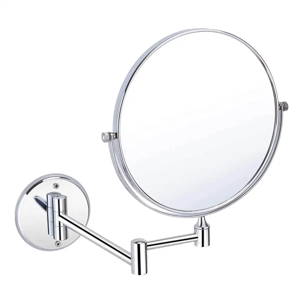 Stylish round cosmetic mirror with an extendable bracket, perfect for close-up grooming and makeup application.