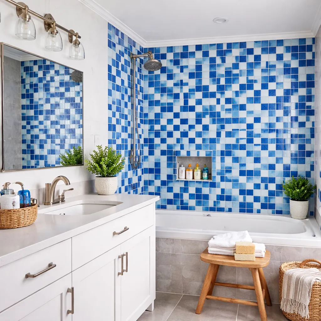 Bahama Sky glass mosaic, bright sky blue tones, 48x48mm