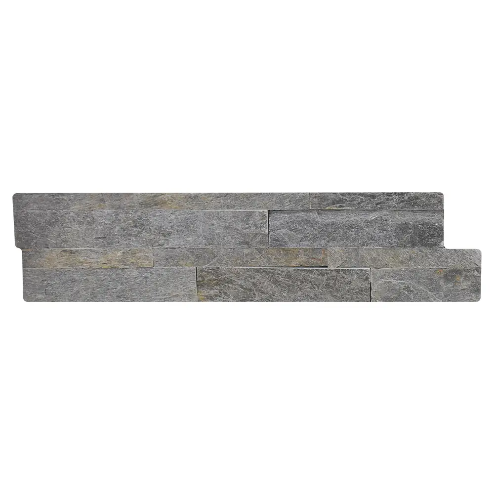 A natural Silver Shine stone cladding featuring subtle silver and grey tones, designed to add texture and depth to modern interior and exterior walls.