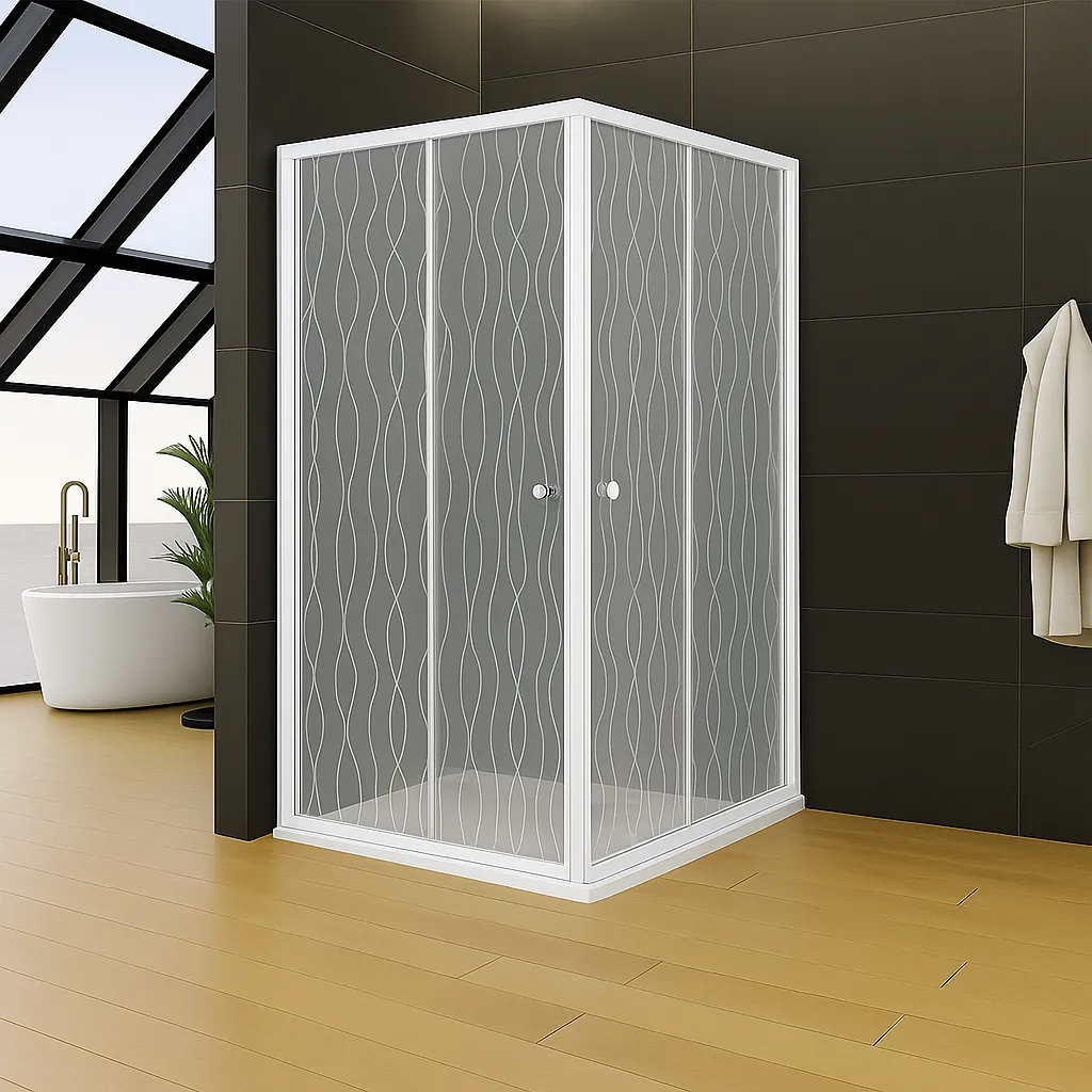 Upgrade your bathroom with this 900×900×1800mm corner entry cubicle. Featuring patterned 4mm tempered glass, a chrome frame, and durable plastic handles, it offers both style and practicality in a compact design that fits neatly into any corner.
