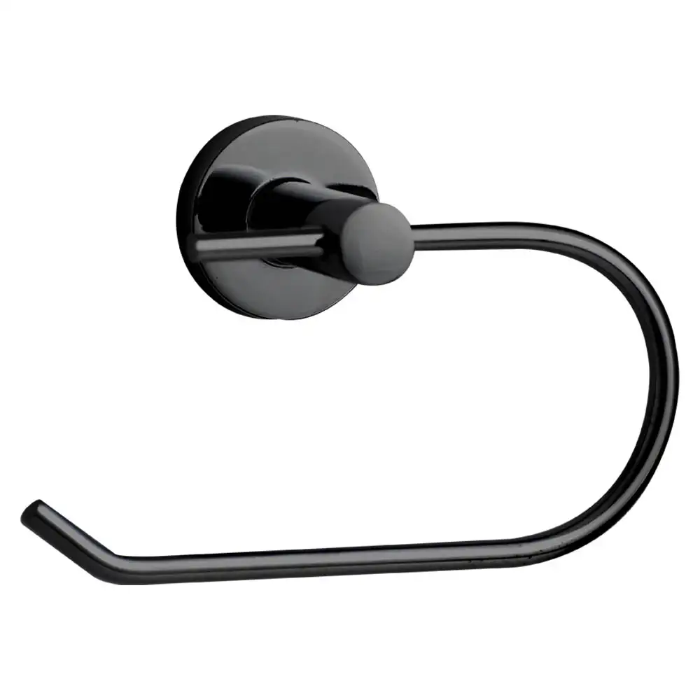 Matte black toilet paper holder, sleek and reliable. Backed by a 5-year warranty.