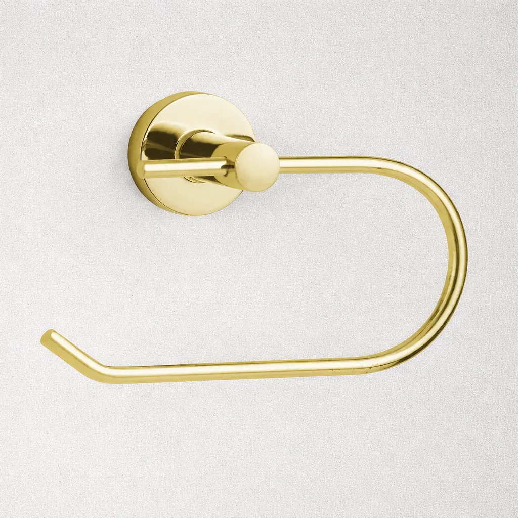 A premium gold toilet paper holder designed to add a luxurious finishing touch to modern bathroom spaces. Comes with a 5-year warranty.