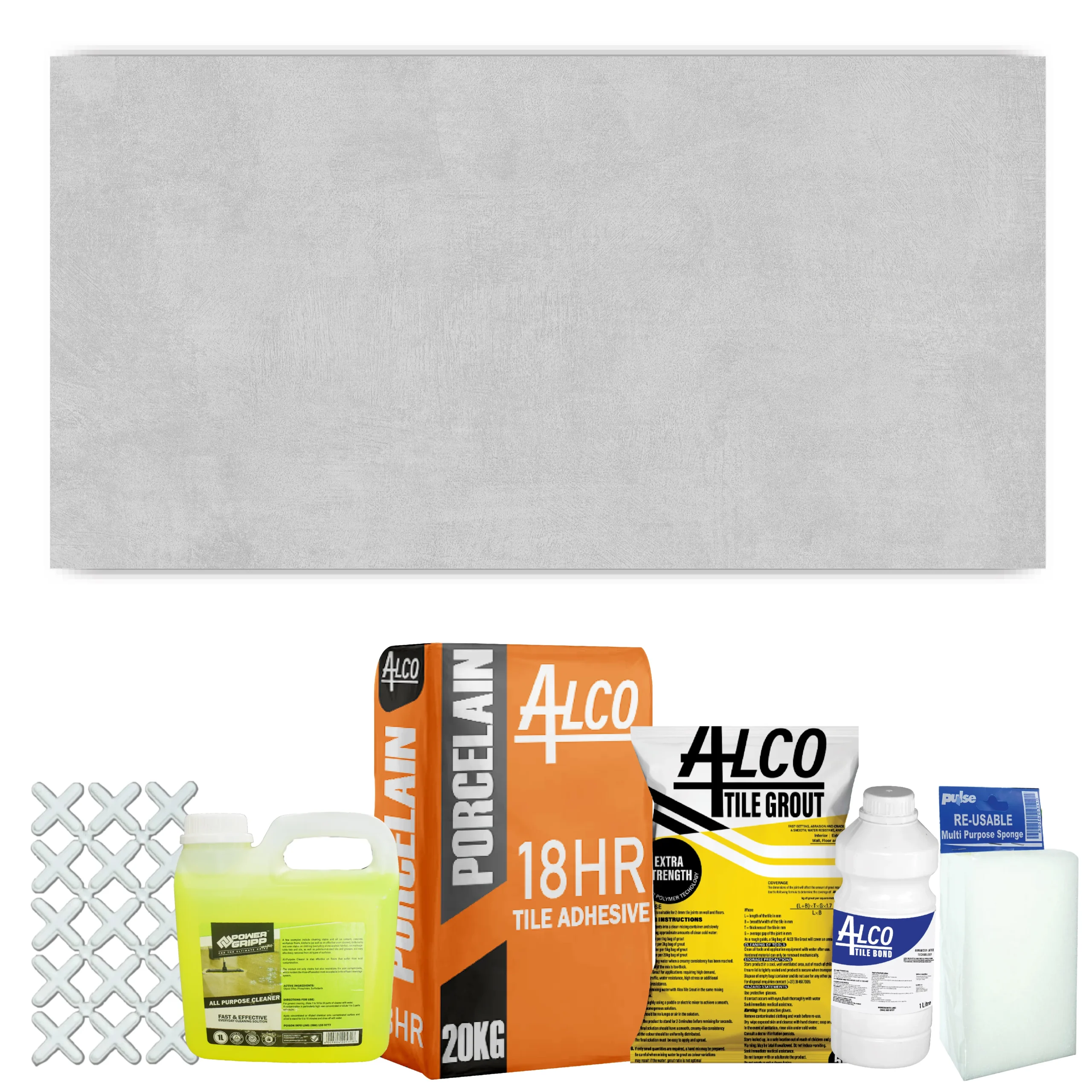 One Combo covers 10.08 square meters with 7 boxes. Comes complete with adhesive, bonding liquid, grout, and spacers — everything you need for a flawless finish.