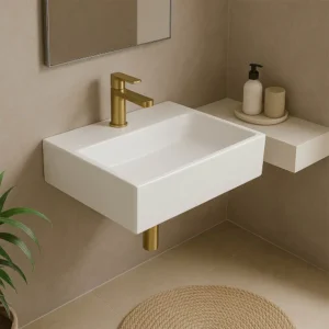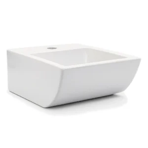 Curved white basin with bracket, sleek design for contemporary spaces – 445×362×195mm