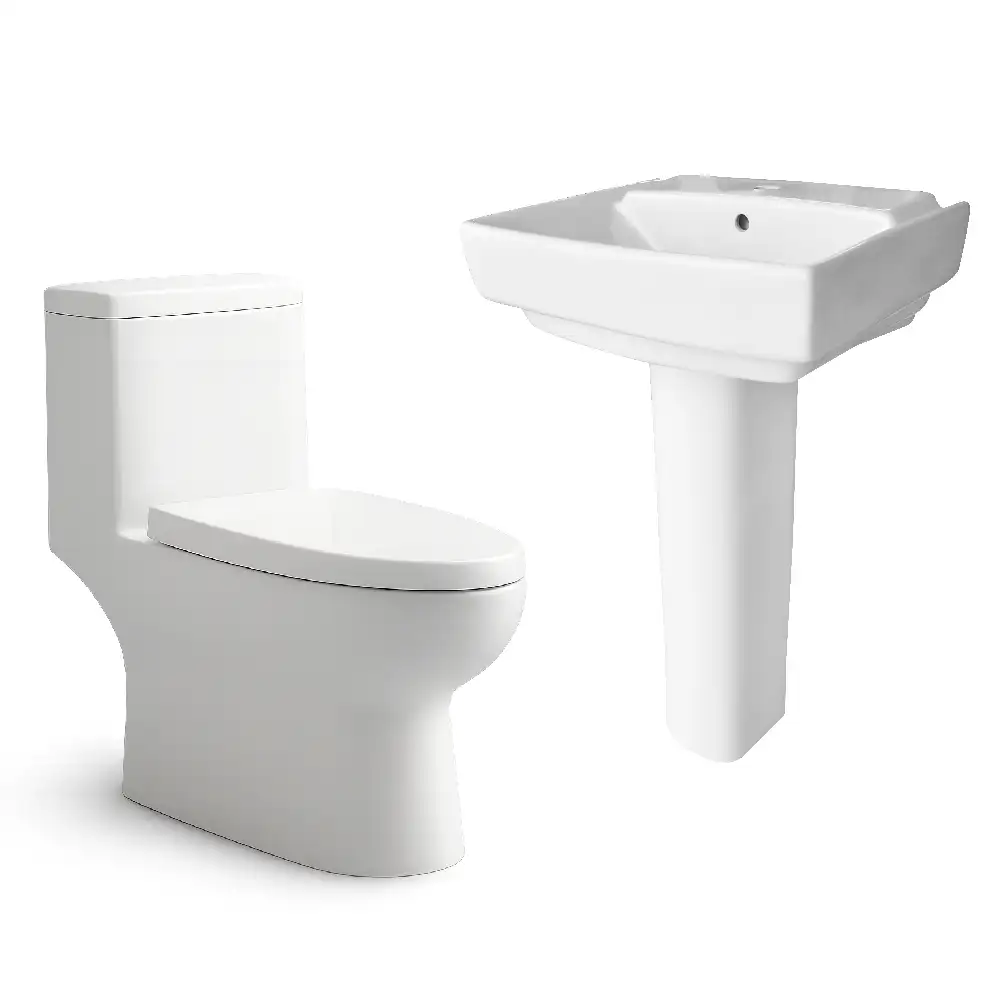 Combo Includes: Alco Top Flush Close Couple Toilet Set & Wash Basin + Belonia Pedestal.