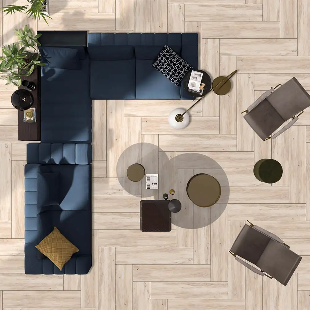 Beige wood-look floor tile, 200x900mm, versatile design with extended plank style.