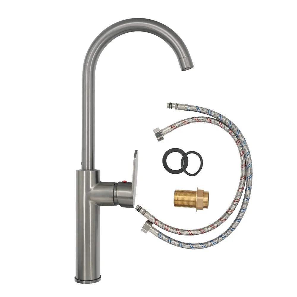 Contemporary gun grey sink mixer with an industrial-inspired tone