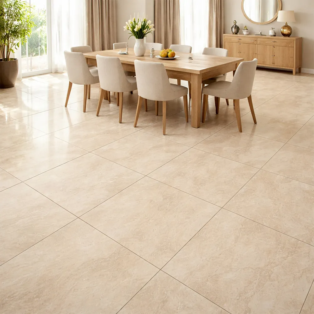 A refined Sisam Beige polished porcelain tile featuring warm beige tones and an A-grade finish, designed to bring a soft, elegant look to modern interior spaces.