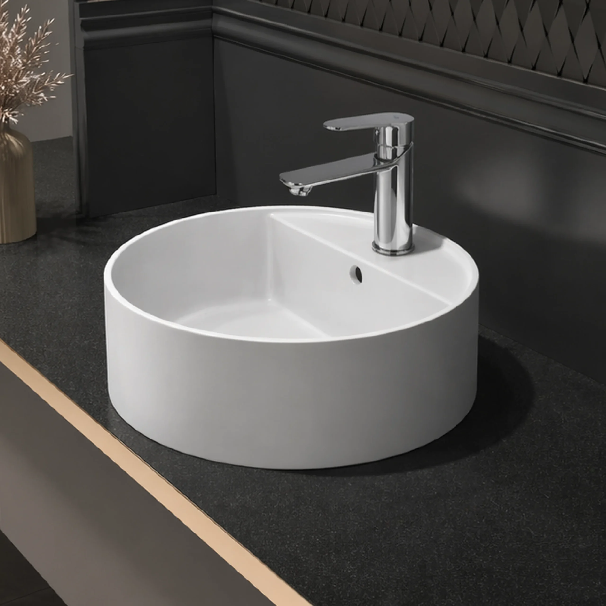 A sleek, modern pairing featuring the Alco Tivona Arc Chrome Basin Mixer with a 10 year warranty and Alco Tabby Counter Top Basin—perfect for adding a clean, contemporary touch to your bathroom.