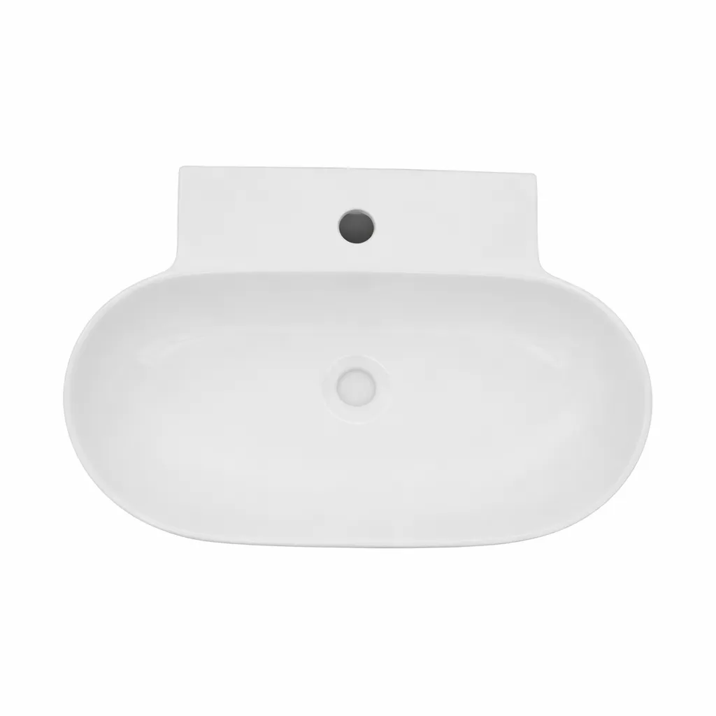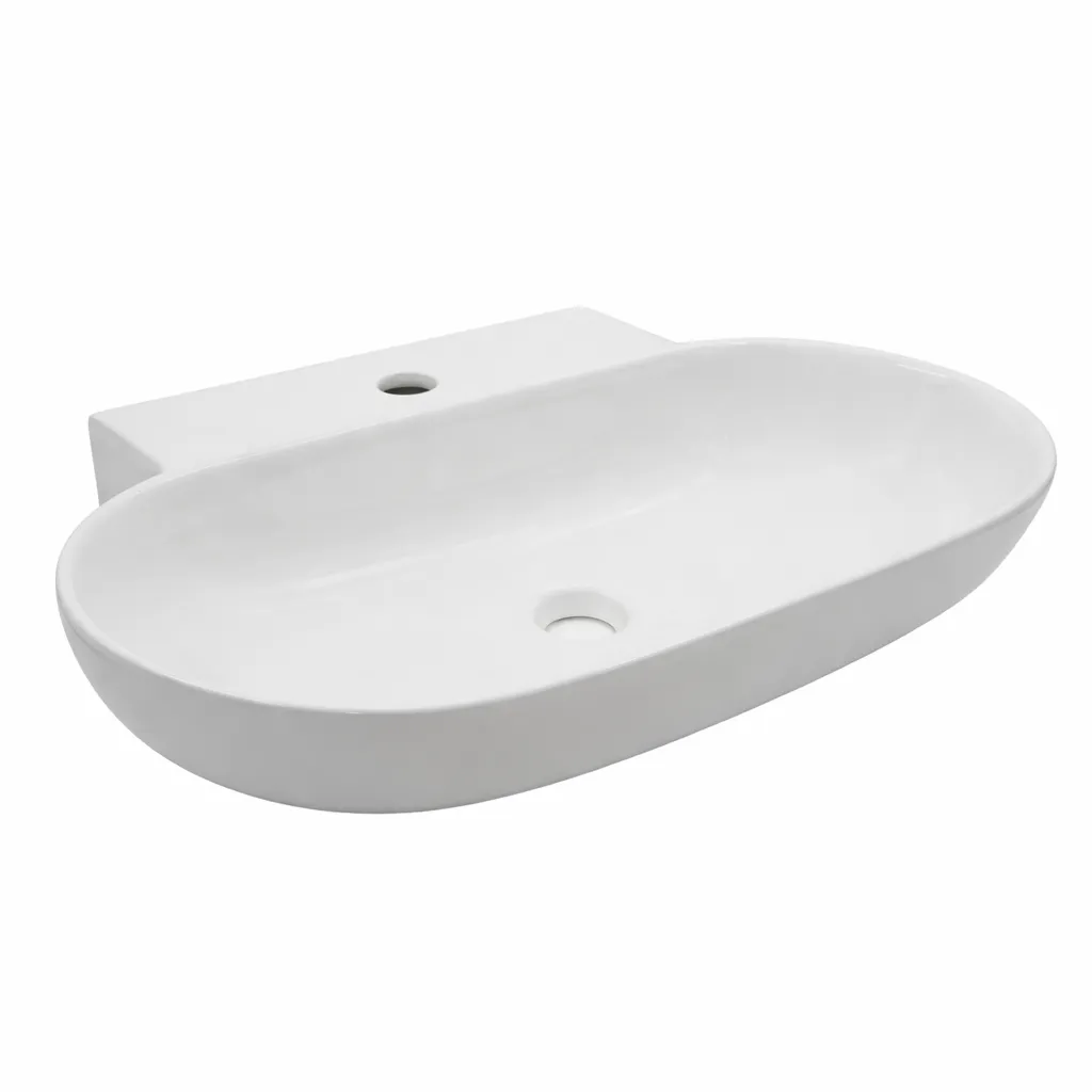 A sleek oval basin with smooth flowing lines and a modern finish, measuring 58.5cm x 40.5cm x 17cm for a spacious and elegant bathroom solution.