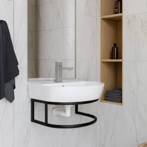 A compact square basin with clean modern lines, measuring 26cm x 32cm x 12cm for a neat and space-saving bathroom solution.